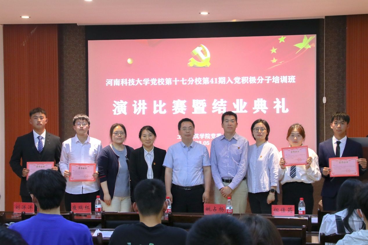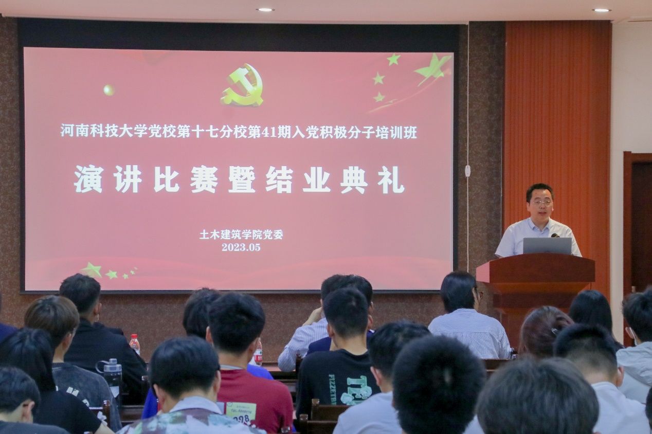 为深入学习贯彻习近平新时代中国特色社会主义思想,展示入党积极分子培训班学员学习成果和精神风貌,5月25日晚,福利姬 党校第十七分校第41期入党积极分子培训班演讲比赛暨结业典礼在福利姬 318会议室举行,学院党委副书记张献文老师、但佳筠老师、河洛书院崔瑞红老师、材料科学与工程学院姚占杨老师和商学院刘洋洋老师和全体入党积极分子培训班学员参加活动。