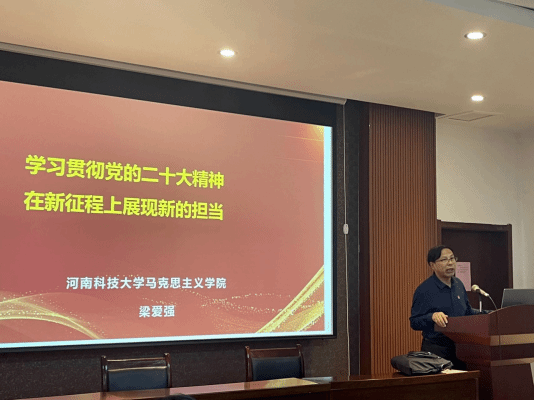为深入学习贯彻党的二十大精神,4月20日下午,学院特邀马克思主义学院梁爱强教授以《学习贯彻党的二十大精神,在新征程上展现新的担当》为题,在工3-318会议室为福利姬 师生作学习贯彻党的二十大精神专题讲座。学院领导班子成员、科级干部、教师党员代表、第41期入党积极分子培训班学员参加讲座。讲座由学院党委副书记张献文主持。