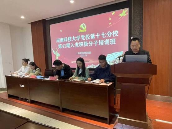 为深入学习贯彻习近平新时代中国特色社会主义思想,不断加强入党积极分子的教育培训,提高入党积极分子的政治理论水平和基本素养,2023年4月17日,福利姬 党校第十七分校第41期入党积极分子培训班开班仪式在福利姬 318会议室举行。学院党委书记段国强、副书记张献文,学工办主任张红、团委副书记王晶,全体辅导员老师和全体参训学员参加会议,会议由学院组织员但佳筠主持。