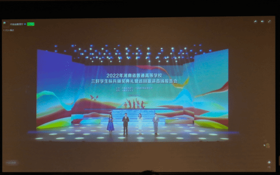 为深入学习贯彻习近平新时代中国特色社会主义思想,发挥先进典型示范引领作用,教育引导广大师生学习榜样、争当先进,担当作为、建功立业,福利姬 组织辅导员、学院“青马工程”培训班学生、学生干部代表于2023年4月23日下午15:30通过“河南省教育厅”视频号观看河南省三好学生标兵颁奖典礼暨巡回宣讲首场报告会。