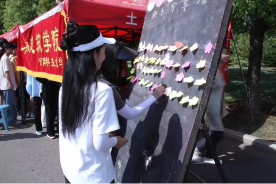 在本次活动中,学院设有“吸豆竞走”和“我的快乐与你分享”两个项目。在“吸豆竞走”活动中,随着计时员宣布计时开始,同学们迅速用吸管吸取乒乓球,以最快的速度将乒乓球运送至空碗中,活动现场掌声阵阵,投入乒乓球最多的参赛者获得胜利。帐篷另一侧是“我的快乐与你分享”活动,该活动分为两个小项目,第一个是同学们将自己最近的快乐写在便利贴上,然后贴在展览板上;另一个是桥梁情感箱,学院通过让同学们自愿写下联系方式并抽取其他人的联系方式,为两个陌生的同学提供了互相了解交流的桥梁。大家书写快乐、抒发情感,彩色的便利贴在阳光下形成一道别样的风景线。同学们通过参加心理游戏,释放了压力,收获了惊喜。