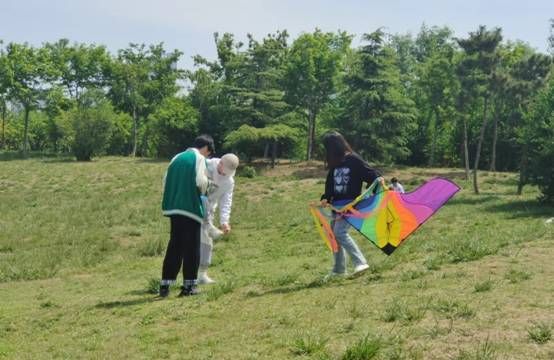 活动过程中,同学们拿着自己的风筝,默契合作,技术娴熟,放飞灵活、稳定,收放线⾃如,到处充满了欢声笑语,加油呐喊声接连不断,处处可见同学们团队合作的力量。