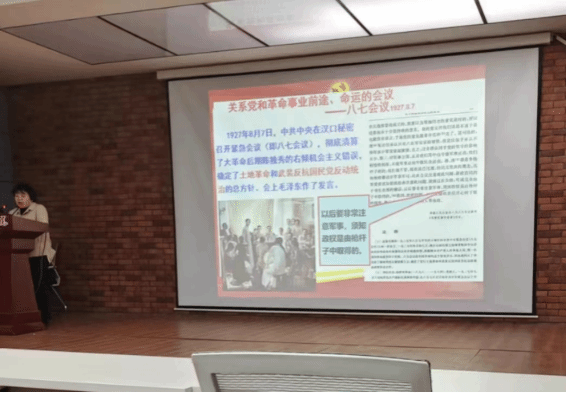 霍玉敏老师以“学党史、知党情、强党性”为题,以“开天辟地、改天换地、翻天覆地、惊天动地”为线,讲述了中国共产党百余年不同历史时期的发展过程。霍玉敏老师从“一个杂志,两个运动”即《新青年》杂志、新文化运动、五四运动开始,到中共一大中国共产党的诞生、六届六中全会“马克思主义”中国化,最后到1992年的南方谈话,通过对这期间重大历史事件的讲解,向学员们展现了中国共产党是如何遇到难题解决难题,坚定理想信念,一路披荆斩棘,迎来今日辉煌的。