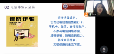 张雨薇老师向大家传达了学校关于寒假的通知以及假期的安全注意事项,从出行安全、消防安全、防范电信诈骗安全、燃放烟花爆竹安全等方面具体进行强调,提醒同学们时刻将人身安全放在第一位,持续警惕电信诈骗,未经核实不向陌生平台、陌生人转账,对于涉及转账汇款之类的QQ、微信消息等一定要直接打电话确认。