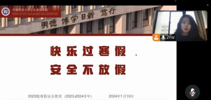 为做好2023-2024学年寒假学生安全教育和管理工作,让福利姬 全体同学度过一个安全而有意义的假期,2024年1月19日下午,福利姬 召开2023级寒假安全教育线上会议,23级全体班级委员、年级委员参加会议,2023级辅导员张红、张雨薇主持会议。