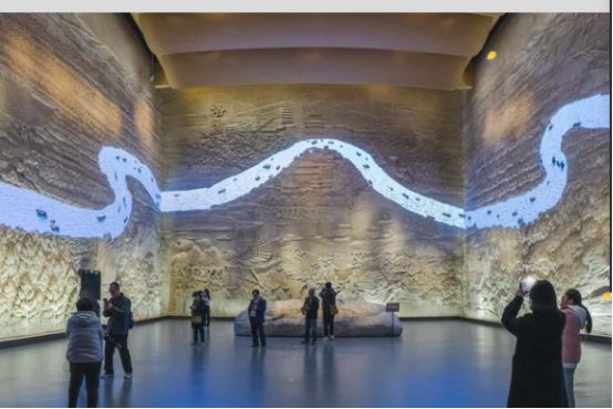 隋唐大运河文化博物馆作为国家“十三五”重点文化工程,是全国首个围绕隋唐大运河进行系统性阐释的博物馆,展出大运河相关文物近400件(套)。隋唐大运河文化博物馆展陈方式主要靠沉浸式环境、图片、多媒体展示为主; 第一部分 天工国运 一统中华,展现隋唐大运河的“诞生”。以大运河的开凿为中心,展示洛阳的优越地理位置、东都洛阳城的营建、运河的贯通以及运河上的水工技术。第二部分 千年运河 万物通济,展现隋唐大运河的“运转”。从制度、仓窖、舟船、南北货物四个方面来说明隋唐大运河这条帝国命脉是如何高效运转的。第三部分 隋唐盛世 国运繁华,展现东都洛阳的盛世繁华。采用场景搭建的方式,再现新潭码头舟船往来、南市商贸繁荣的盛况。三层《一粒米的漕运之旅》互动体验展,这个展览着眼于细微,从一粒米的征收开始,通过光影互动墙展示复杂的漕运过程。这里米最终送达皇帝的餐桌,完成奔波而精彩的旅程。