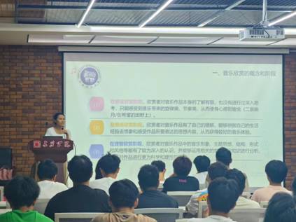 此次“乐学工作坊”由艺术与设计学院的邱华 蓉老师主讲。邱老师围绕音乐欣赏的概念和阶段、乐欣赏的意义、音乐欣赏的基本方法三个主题展开。她通过生动的讲解,向学生们展示了音乐在缓解压力方面的重要作用,并鼓励同学们勇于选择自己的道路,追寻光明,踏歌而行。