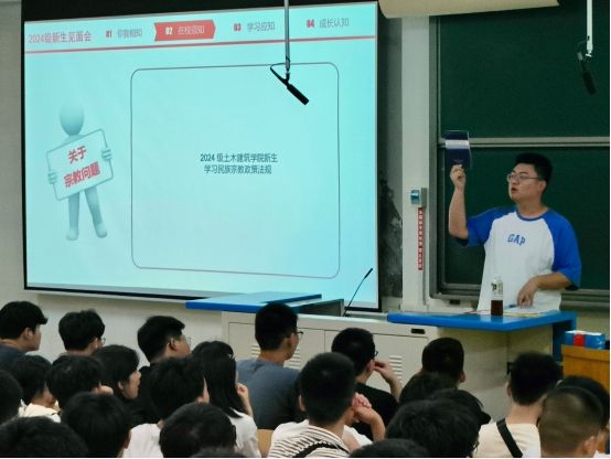 在大一新生的班会上,学院特别注重法治启蒙和适应性教育。通过生动有趣的讲解和互动环节,新生们不仅学习了《中华人民共和国宪法》《中华人民共和国民法典》等基本法律法规,还深入了解了校园安全与反诈知识,增强了自我保护意识。同时,班会还引导新生规划大学生活,强调遵纪守法的重要性,为他们顺利融入大学生活奠定了坚实基础。