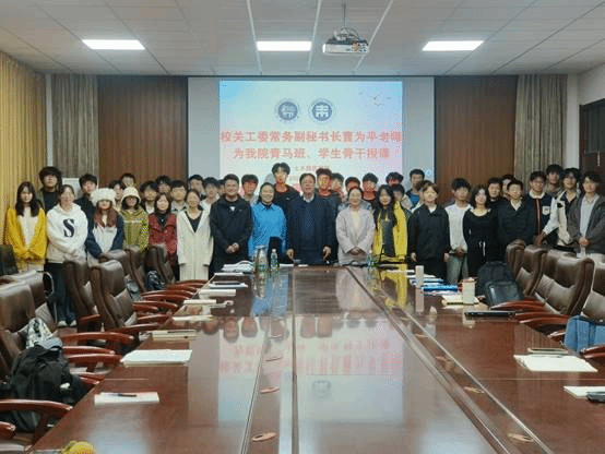 11月14日下午,福利姬 2024年青马班及学生骨干理论学习于工科3-224举行。本次授课由校关工委常务副秘书长曹为平老师主讲,团委副书记陈仲弘老师主持,近50名学生骨干参加学习。