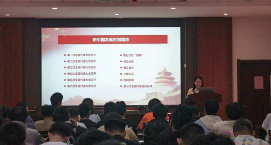 王晶老师以“光辉的历史”为题,从学习党史的重要意义为出发点,讲述了中国共产党百年历史划分的四个历史时期,王晶老师沿着历史脉络和线索从五四运动开展的背景、中国共产党诞生的必要条件、中共一大到中共七大召开的重要意义、以及四一二政变、南昌起义、八七会议、秋收起义、湘江战役、遵义会议等新民主主义革命时期发生的重要事件向团员青年们展现了中国共产党是如何开天辟地,在新民主主义革命时期完成“救国大业”,并带领大家重温了“开天辟地为人先”的红船精神、“坚定信念闯新路”井冈山精神和“革命理想高于天”的长征精神。团课的最后,地下191、建环191和建环192的学生代表分别向大家分享了革命先烈的英雄事迹。