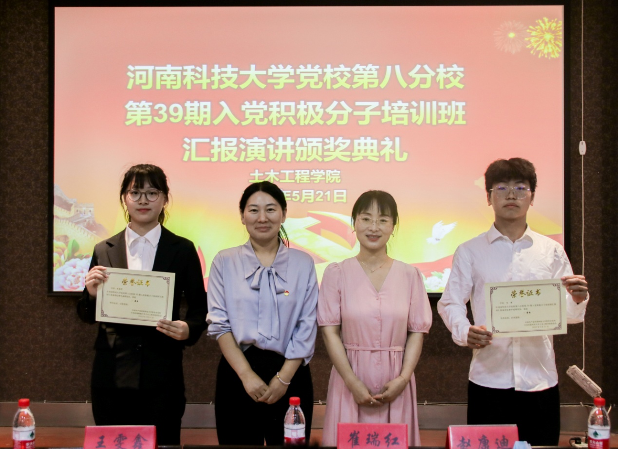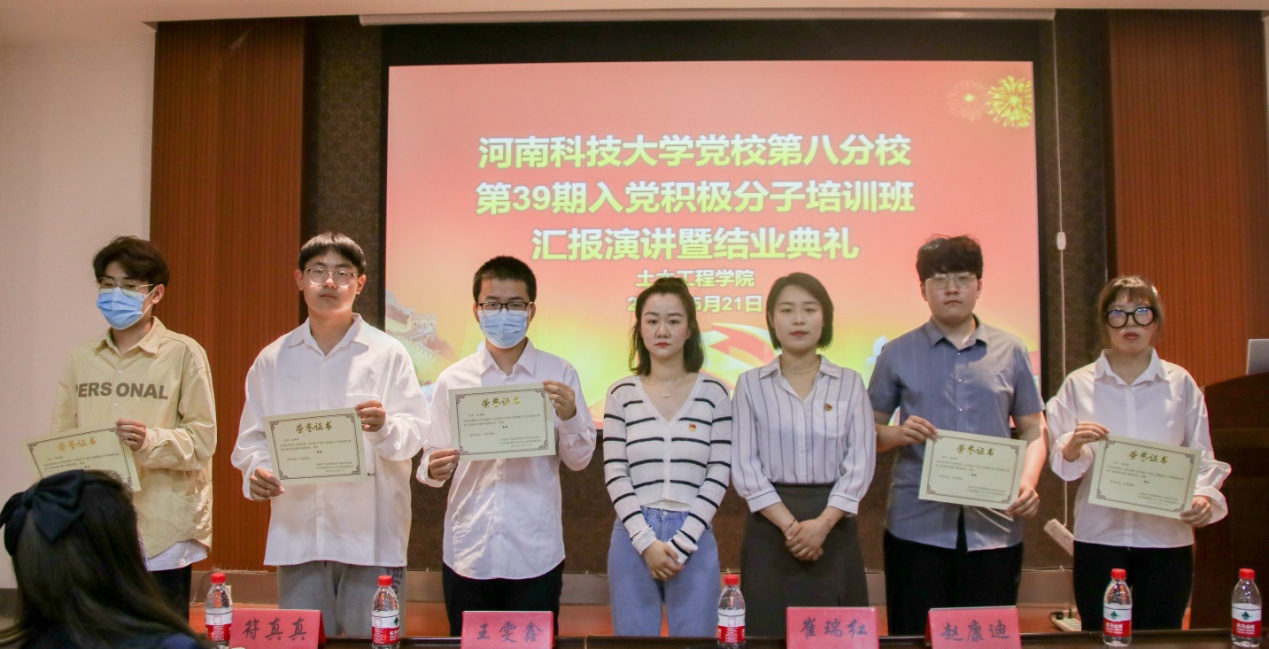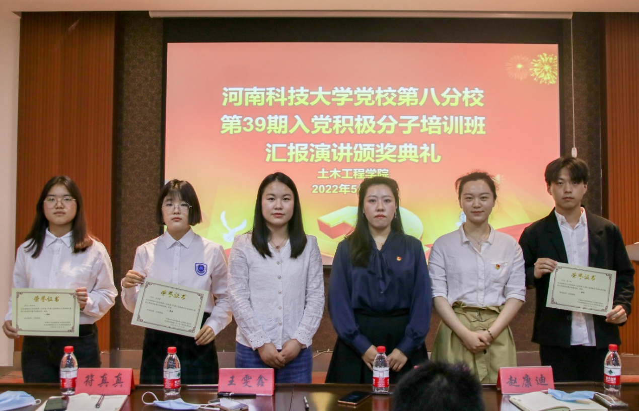 2022年5月21日10:00福利姬 党校第八分校第三十九期入党积极分子培训班学员汇报演讲暨结业典礼在工3-318举办,典礼由张蓝方老师主持,信息工程学院党委副书记赵秋燕老师、河洛书院学生事务办公室主任崔瑞红老师、信息工程学院王雯鑫老师、河洛书院赵康迪老师、河洛书院符真真老师、土木工程学院学生工作办公室主任张红老师、土木工程学院办公室副主任陈茜老师出席典礼,第三十九期入党积极份子培训班全体学员参加结业典礼。