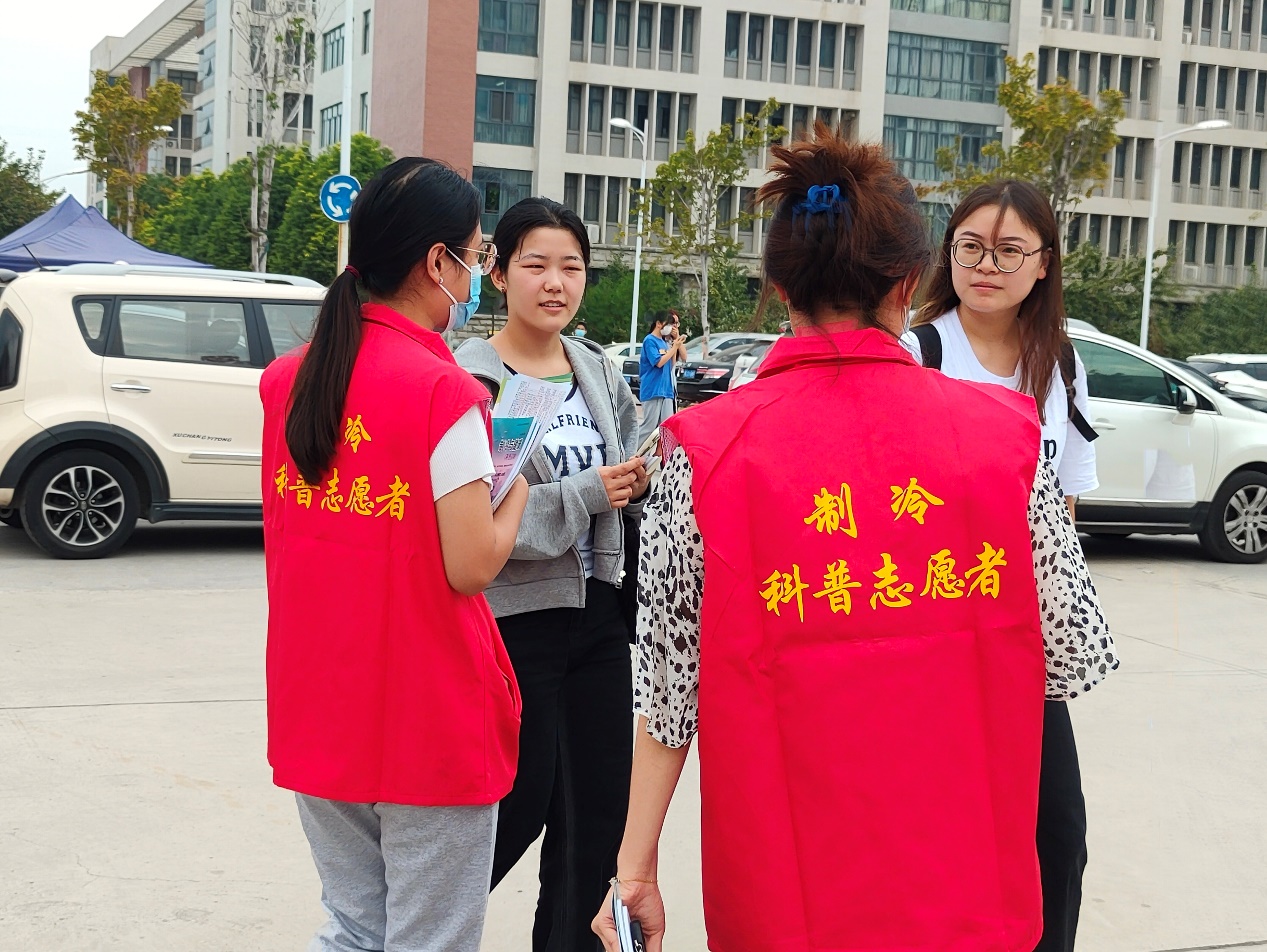 2022年9月30日上午,河南省制冷学会制冷科普系列活动在福利姬 开元校区和西苑校区开展,本次活动以“制冷在你身边,科学防疫不松懈”为主题。活动由福利姬 和车辆与交通学院的教授和博士老师们一起策划并精选科普内容、科普方式,两个学院共40多名研究生和本科生志愿者一起参与,福利姬 制冷志愿者30多名志愿者共同参加,以科普宣讲、制冷空调与冰箱高效健康使用的宣传单和宣传手册发放、展板展示等方式方式开展,宣传普及学生和教师约1000人次。本次制冷科普活动有利于提高福利姬 与制冷相关专业教职工和学生对科学使用制冷与空调设备的认识水平,树立绿色环保、低碳健康生活的理念,提升学生对专业认知水平及热爱度。本次科普活动也是充分发挥自身专业优势,用实际行动践行“我为群众办实事”。活动结束后,志愿者和宣传老师都强烈表示收获颇多,希望以后有更多的机会举办相关的活动!