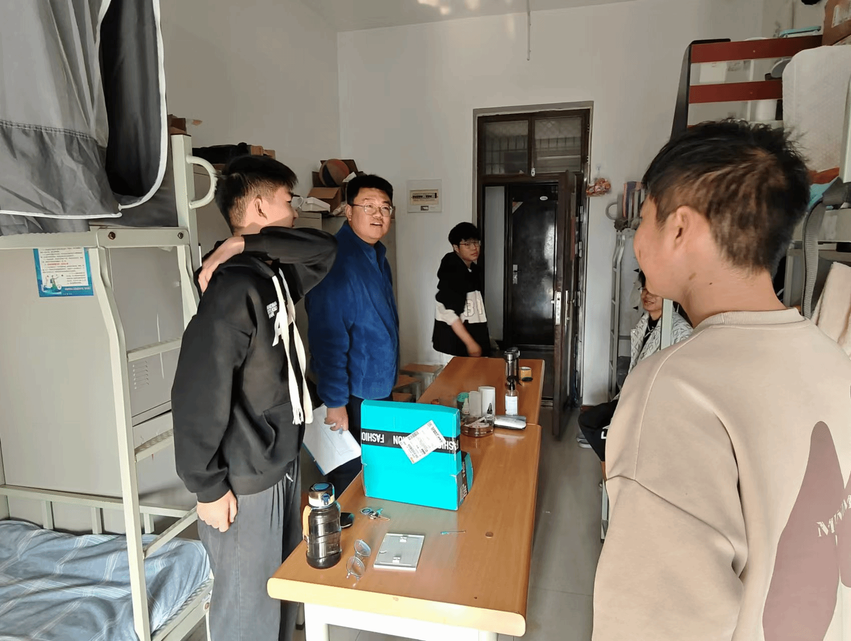 学生宿舍是学生学习生活的重要场域,更是学风建设的关键阵地。学院紧扣“四进”中“进宿舍”工作要求,组织辅导员常态化走访学生宿舍,既贴心关注学生日常起居需求,更精准聚焦宿舍内学习状态与氛围营造。辅导员在开展宿舍安全卫生检查的同时,主动引导学生科学规划课余时间,坚决杜绝沉迷网络游戏等不良行为,积极倡导组建“学习型宿舍”,推动宿舍内开展朋辈辅导、学习经验分享等互动活动,有效将宿舍转化为学风建设的新支点,打造成为互助共进、携手成长的温馨育人空间,让学风建设的触角延伸至校园生活的每一个角落。
