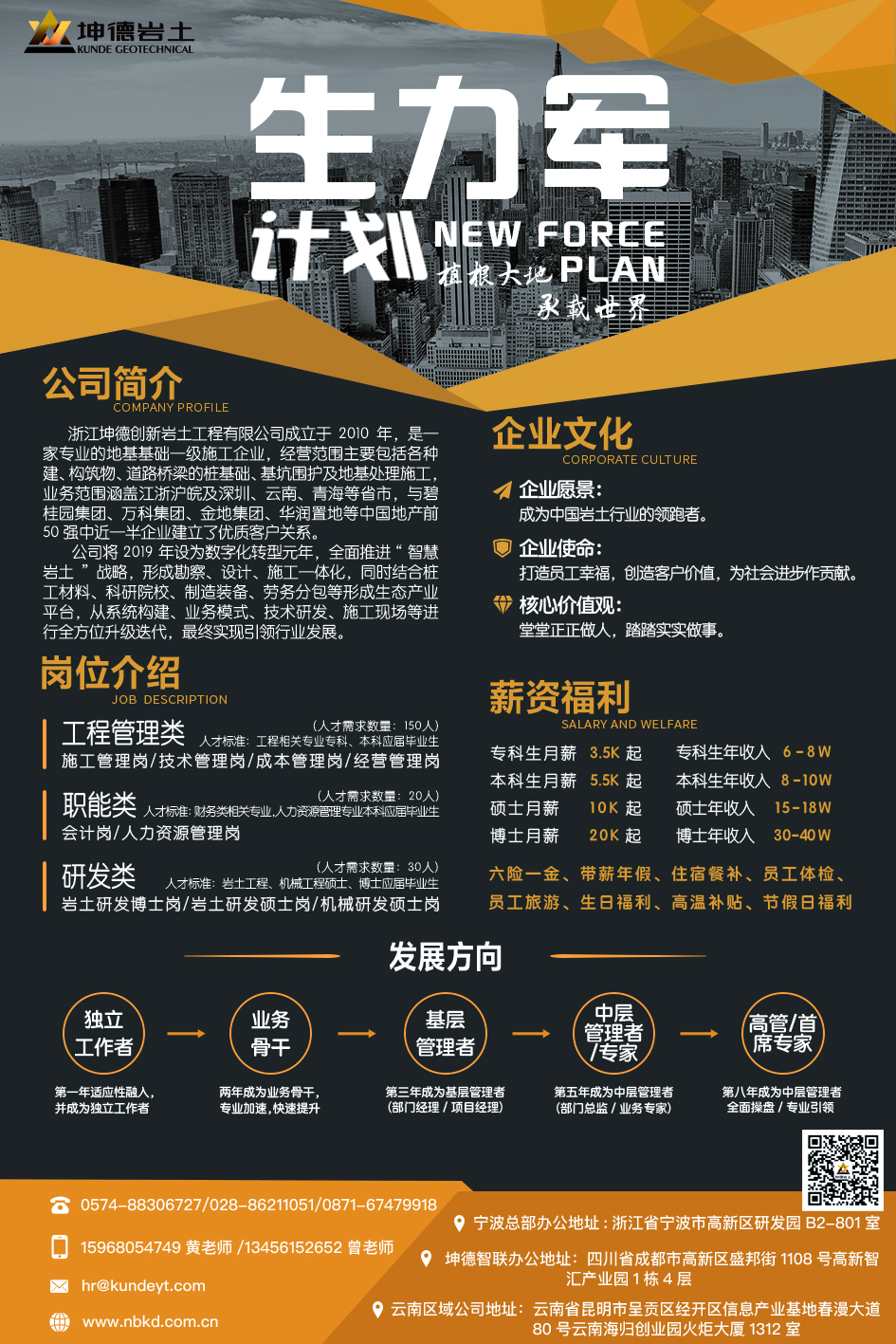 浙江坤德创新岩土工程有限公司2021招聘安排