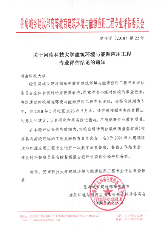 建筑环境与能源应用工程专业成为全国200余所设有本专业的高校中,通过评估的第40所高校之一,也是河南省第三所通过建筑环境与能源应用工程专业评估的高校之一。