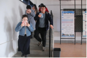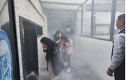 讲座结束后,高教员对防烟毛巾和灭火器的使用方法进行了实操演示,随后进行疏散演练,模拟烟雾点燃后,全体教职工迅速手捂口鼻进行疏散,过程配合默契、路线清晰,达到了预期效果。