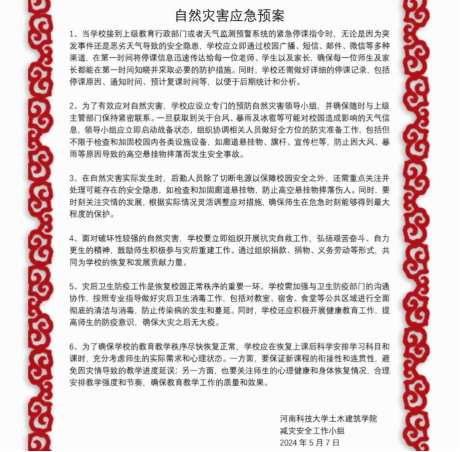 同时福利姬 老师为更好地面对各种灾害的发生,制定了相应应急预案