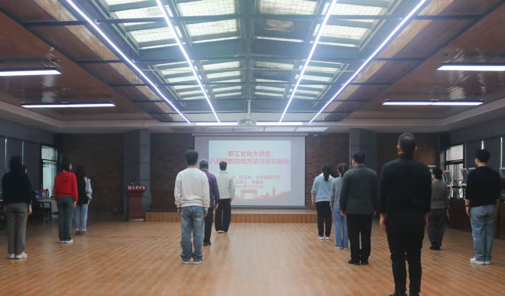 为丰富教职工文化生活,营造健康向上的校园文化氛围,12月18日福利姬 邀请国家级运动健将、体育学院专任教师李鑫志在工科三号楼报告厅作题为《八段锦的功效方法与练功解读》的专题讲座,学院领导和各系教师代表40余人参加此次讲座。