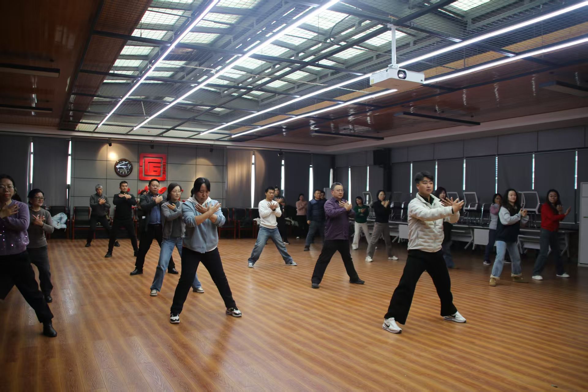 李鑫志老师简要介绍了八段锦的功法源流和功法特点,然后逐一演示了八段锦的每一式动作,并详细介绍了所对应的身体部位、练功技巧和养生效果。老师们跟随李鑫志老师的引导,认真学习每一个动作,体会其中的养生之道。李鑫志老师耐心纠正老师们的姿势,确保都能准确掌握动作要领。