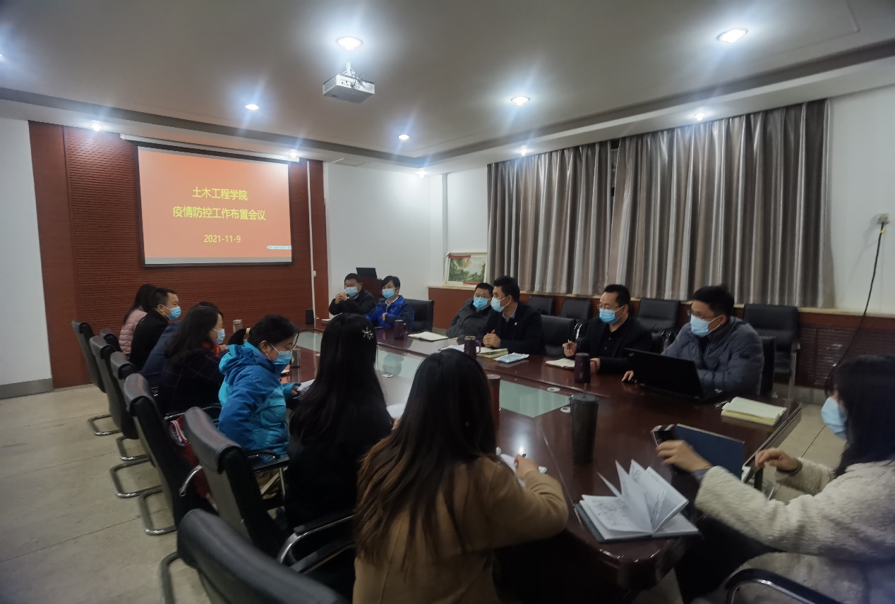 2021年11月9日下午15点,土木工程学院在工科3号楼318会议室召开疫情防控工作专题会议,对学院当前疫情防控工作进行再安排再部署。学院党政领导班子成员、各系主任、党支部书记,全体辅导员参会,本次会议由院党委书记段国强主持。
