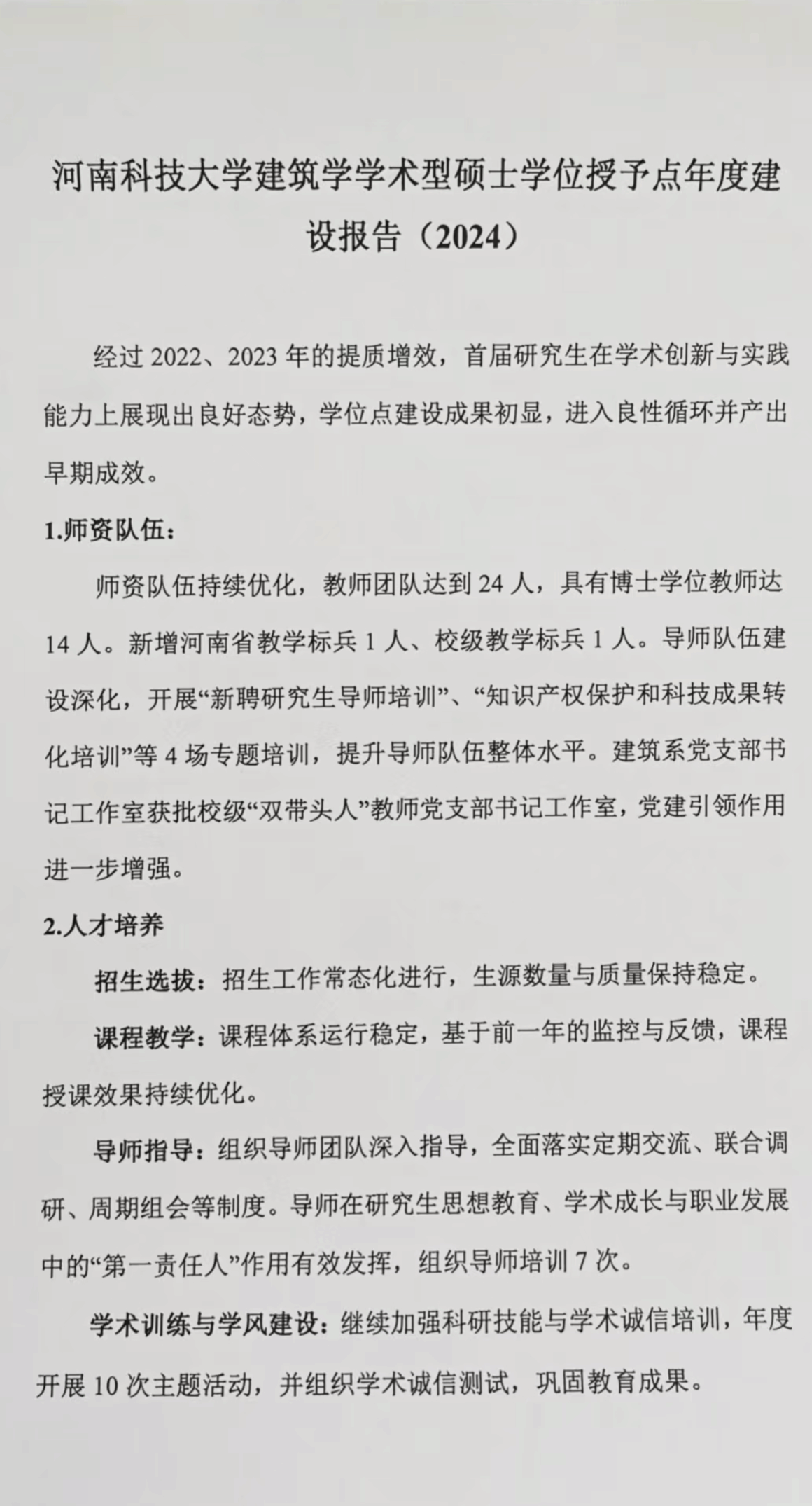 福利姬 建筑学学术型硕士学位授予点年度建设报告(2024年)