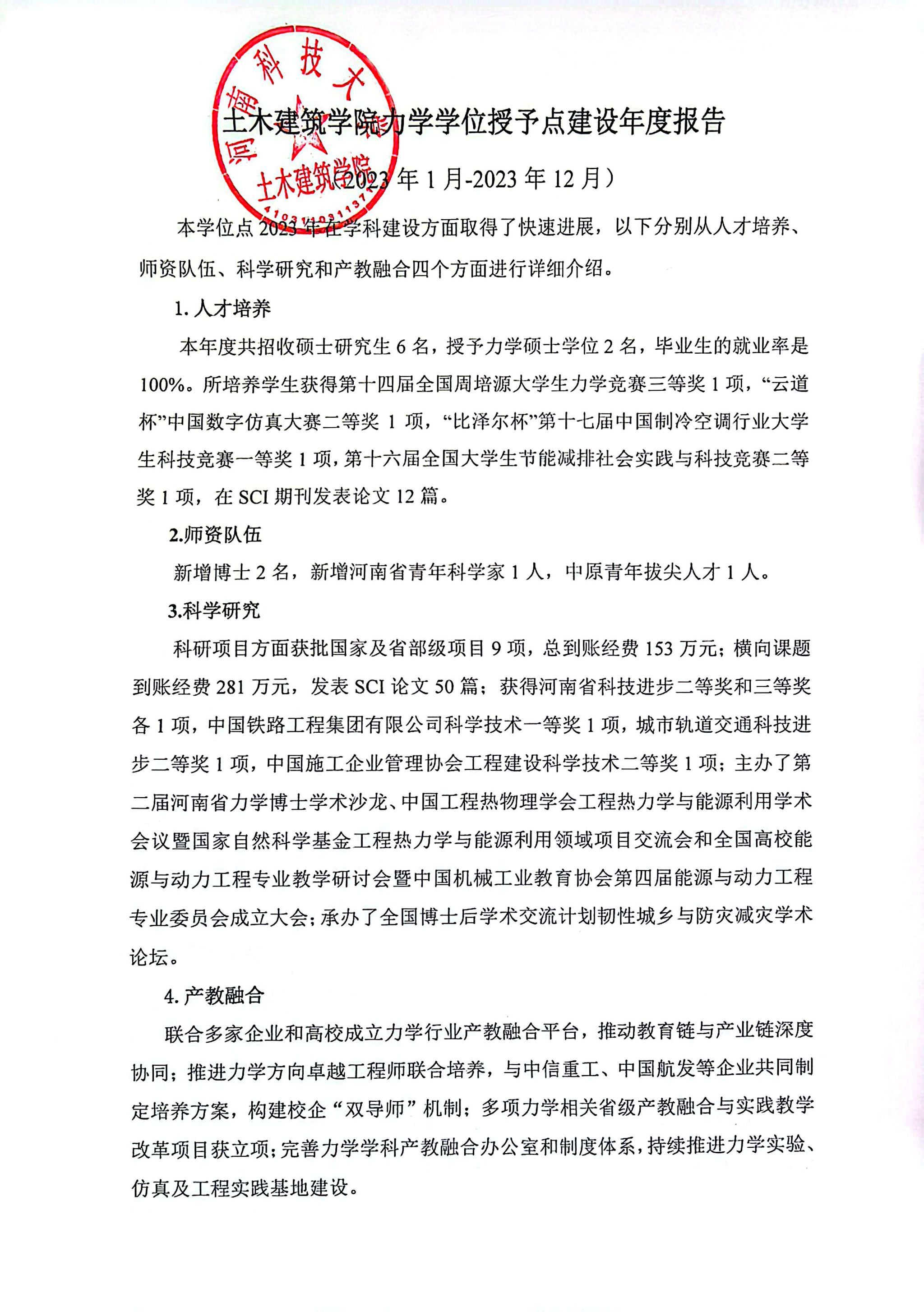 福利姬 力学学位授予点建设年度报告(2023年)
